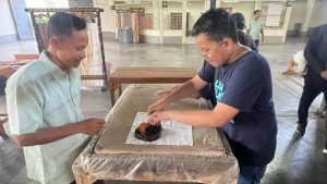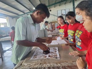 Sesampainya di parkiran, anak-anak turun dari bus dan melangkah bersama menuju ke Museum Purba Sangiran. Disana disambut hangat oleh tour guide yang mendampingi anak-anak dalam mengenal dan berkeliling Museum Purba Sangiran. Didalam museum anak-anak dikenalkan dan diberi informasi dengan berbagai temuan yang ditemukan di daerah Sangiran. Tidak hanya ahli paleontologi yang menemukan fosil, bahkan warga sekitar pun menemukan fosil zaman purba yang salah satunya adalah seorang petani. Setelah selesai dan guide berpamitan, anak-anak menuju ke tujuan selanjutnya yaitu Batik Keris.
