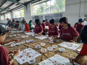 Kegiatan selanjutnya anak-anak dikenalkan dengan sebuah seni budaya asli dari Indonesia yaitu batik, yang dimana batik ini sudah menjadi pakaian keseharian untuk bekerja maupun seragam sekolah. Pada saat berada di Batik Keris anak-anak dekenalkan dengan berbagai macam jenis dan motif batik Solo serta pernak pernik ciri khas dari Batik Keris. Setelah mengenal dan mengelilingi galeri Batik Keris, anak-anak diberi kesempatan untuk mencoba membuat batik sendiri di selembar kain yang diberi oleh bapak ibu guru.