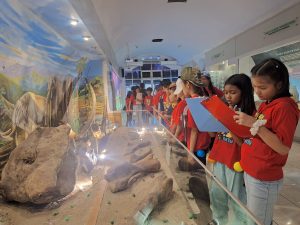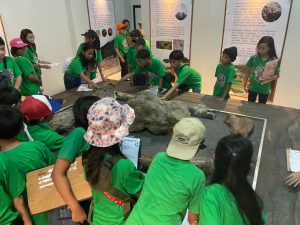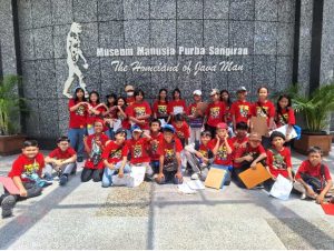 Sesampainya di parkiran, anak-anak turun dari bus dan melangkah bersama menuju ke Museum Purba Sangiran. Disana disambut hangat oleh tour guide yang mendampingi anak-anak dalam mengenal dan berkeliling Museum Purba Sangiran. Didalam museum anak-anak dikenalkan dan diberi informasi dengan berbagai temuan yang ditemukan di daerah Sangiran. Tidak hanya ahli paleontologi yang menemukan fosil, bahkan warga sekitar pun menemukan fosil zaman purba yang salah satunya adalah seorang petani. Setelah selesai dan guide berpamitan, anak-anak menuju ke tujuan selanjutnya yaitu Batik Keris.