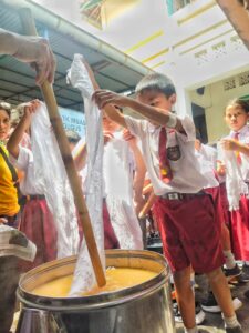 Kegiatan ini didampingi oleh Miss Daun, Ibu Diaz, yang memandu setiap tahapan dengan sabar dan penuh semangat. Para siswa tampak ceria dan antusias mengikuti seluruh proses, dari awal hingga akhir.