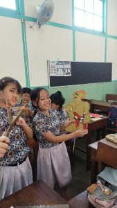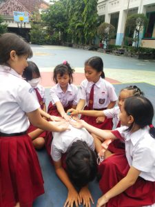 Siswa berdiskusi dalam kelompok mengenai permainan tradisional yang pernah mereka lihat atau mainkan. Mereka juga membaca artikel tentang permainan tradisional, lalu berdiskusi mengenai isi artikel tersebut. Setiap kelompok mempresentasikan hasil diskusinya. Setelah itu, mereka mempelajari dan mempraktikkan permainan tradisional seperti jamuran, cublak-cublak suweng, dan dhakon.