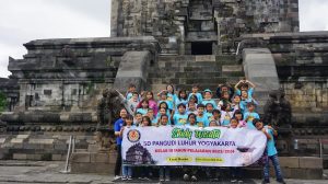 Selepas beraksi di Rik Rok, perjalanan yang kedua yaitu ke Candi Mendut. Di sana anak-anak belajar memahami tempat untuk berdoa saudara-saudari yang beragama Budha. Dari perjalanan ini, mereka belajar tentang sejarah dan keragaman budaya bangsa. Anak-anak juga menjadi paham betapa hebatnya nenek moyang kita pada zaman dahulu ketika membangun candi tersebut. Candi yang berdiri pada tahun 824 tersebut dibangun oleh Wangsa Syailendra. Salah satu anak ada yang menyeletuk, “Wah, sudah lama sekali ya, Bu. Sudah tua candinya!” Nah, begitulah pemahaman anak tentang Candi Mendut. Setelah berkeliling candi, kami pun melakukan pemotretan bersama.