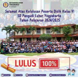 Setelah perjuangan yang cukup panjang akhirnya seluruh peserta didik kelas VI SD Pangudi Luhur Yogyakarta berhasil meraih prestsi yang tinggi dengan dinyatakan Lulus 100%.