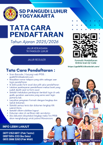 Telah dibuka pendaftaran peserta didik Baru Tahun Pelajaran 2025/2026 SD Pangudi Luhur Yogyakarta, adapun Tatacara pendaftran sebagai berikut:
