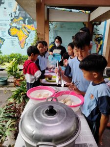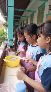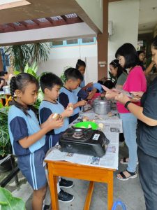 Kegiatan semakin meriah dengan partisipasi orang tua dalam sesi demonstrasi pembuatan tape singkong dan geblek pada tanggal 21 September 2024. Orang tua dan siswa bekerja sama dalam proses pembuatan dua jajanan tradisional ini. Orang tua menunjukkan langkah-langkah pembuatan yang benar, dari bahan dasar hingga proses pengolahan, sementara siswa mencatat dan mengamati dengan penuh antusiasme.