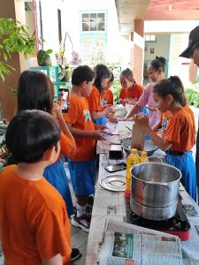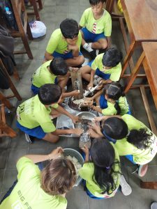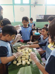 Tidak hanya melihat, siswa juga berkesempatan untuk praktik langsung membuat tape singkong dan geblek secara berkelompok. Kegiatan ini berlangsung pada 25-26 September 2024, di mana siswa belajar mempersiapkan bahan, mengolahnya dengan benar, hingga produk akhir siap untuk disajikan. Pengalaman ini memberikan wawasan praktis dan mendalam kepada siswa mengenai proses pembuatan jajanan tradisional, sekaligus menumbuhkan rasa bangga terhadap kuliner lokal.