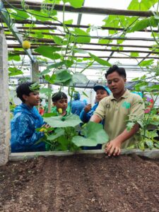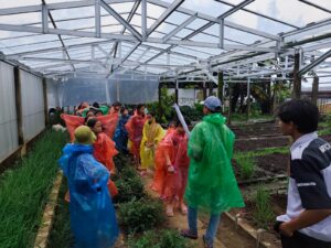 Kegiatan dilanjutkan ke area ketiga, yaitu berkeliling lahan kebun luas yang berisi berbagai tanaman, seperti alpukat kendil, alpukat aligator, jeruk, kopi, merica, dan pala. Siswa juga melihat area peternakan babi yang dikelola secara profesional. Selama kegiatan ini, para siswa memperoleh banyak pengetahuan baru dan pengalaman berharga karena dapat mengamati secara langsung berbagai aktivitas pertanian dan peternakan.