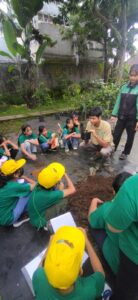 Setibanya di KPTT Salatiga, para siswa dibagi menjadi 8 kelompok, masing-masing didampingi oleh kakak-kakak tim KPTT. Pada area pertama, siswa belajar tentang overplanting atau memindahkan bibit, serta mengenal komposisi media tanam yang baik, yaitu campuran dari kompos, sekam bakar, dan cocopeat. Selain itu, siswa juga mempelajari berbagai pembibitan dan jenis tanaman pertanian, seperti jamur tiram, kangkung, sawi, vanili, cabai, tomat, seledri, labu, pare, dan kecombrang. Anak-anak juga merasakan pengalaman masuk ke greenhouse, serta melihat berbagai jenis peternakan seperti sapi, ayam, kambing, angsa, marmut, dan katak bullfrog.