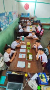 Guru memantik semangat belajar melalui pertanyaan-pertanyaan reflektif tentang makanan tradisional favorit siswa. Anak-anak berbagi cerita tentang cita rasa, kenangan keluarga, dan manfaat bahan alami. Kegiatan ditutup dengan sesi literasi menulis refleksi harian di buku agenda.